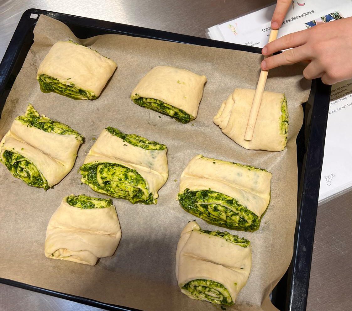 Am Donnerstag, 26.03.2026 zauberten in unserer Erlebnisküche 9 Kinder im Alter von 8-11 Jahren in 3 Stunden ein großes, buntes Osterbrunch-Buffet. Unter Anleitung unserer Hauswirtschaftsmeisterinnen entstanden unterschiedlich gefüllte Schillerlocken, kreative Hefegebäcke, eine Gemüse-Tarte, gefüllte Eier und vieles mehr was bei einem guten Osterbrunch nicht fehlen darf. Anschließend wurde gemeinsam gegessen und viel gelacht.